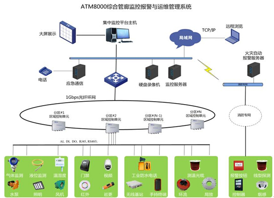 集中監控、統一管理:所有子系統通過(guò)光纖通訊網(wǎng)實(shí)時(shí)的將現場(chǎng)監測數據傳送至桑田島綜合管廊工程控制中心的集中監控平臺上,集中監控、統一管理。