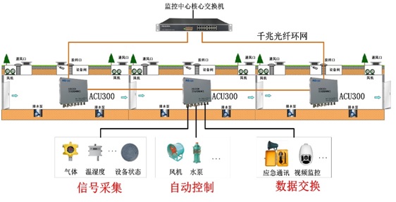 針對綜合管廊/電纜隧道等地下構筑物潮濕、電磁干擾強、污穢嚴重的惡劣場(chǎng)合,光格于2013年推出集成式ACU。其充分利用了大規模集成電路模塊、SoC片上系統等當前最先進(jìn)的電子技術(shù),將PLC、交換機、電源等設備的采集、控制、通信等接口集成為一體,減少中間連接線(xiàn),提高可靠性,并減小其體積。經(jīng)過(guò)多年的現場(chǎng)實(shí)踐,結合現場(chǎng)環(huán)境的實(shí)際需求,光格于2016年又推出了新一代高集成高防護的ACU300系列區域控制單元。