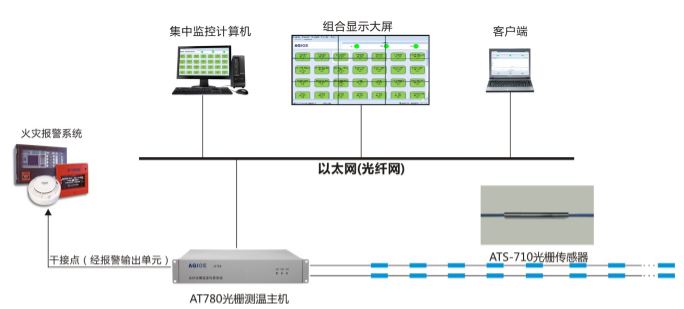 圖示:AT780準分布式光纖光柵感溫火災探測器工作系統圖