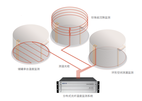光格LNG儲罐綜合監測系統,由分布式光纖測溫主機及相應的附件組成,包含儲罐承臺溫度監測、儲罐珍珠巖沉降監測和儲罐環(huán)形空間泄漏監測。獨創(chuàng )的環(huán)形監測系統,當光纜發(fā)生單點(diǎn)破壞后,不影響火災探測系統工作性能,大幅度提升系統可靠性。