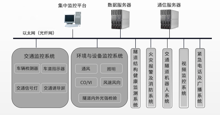 光格公路隧道智能監控管養系統由交通監控系統、環(huán)境與設備監控系統、隧道結構監控監測系統、火災報警及消防系統、交通隧道機器人系統、視頻監控系統以及緊急電話(huà)及廣播系統組成。系統平臺基于EAM思想研發(fā),實(shí)現公路隧道資產(chǎn)實(shí)時(shí)監控,統一管理,旨在提升在役交通基礎設施檢查、檢測、監測、評估、風(fēng)險預警以及養護決策、作業(yè)的快速化、自動(dòng)化、智能化水平,提升重點(diǎn)基礎設施自然災害風(fēng)險防控能力。